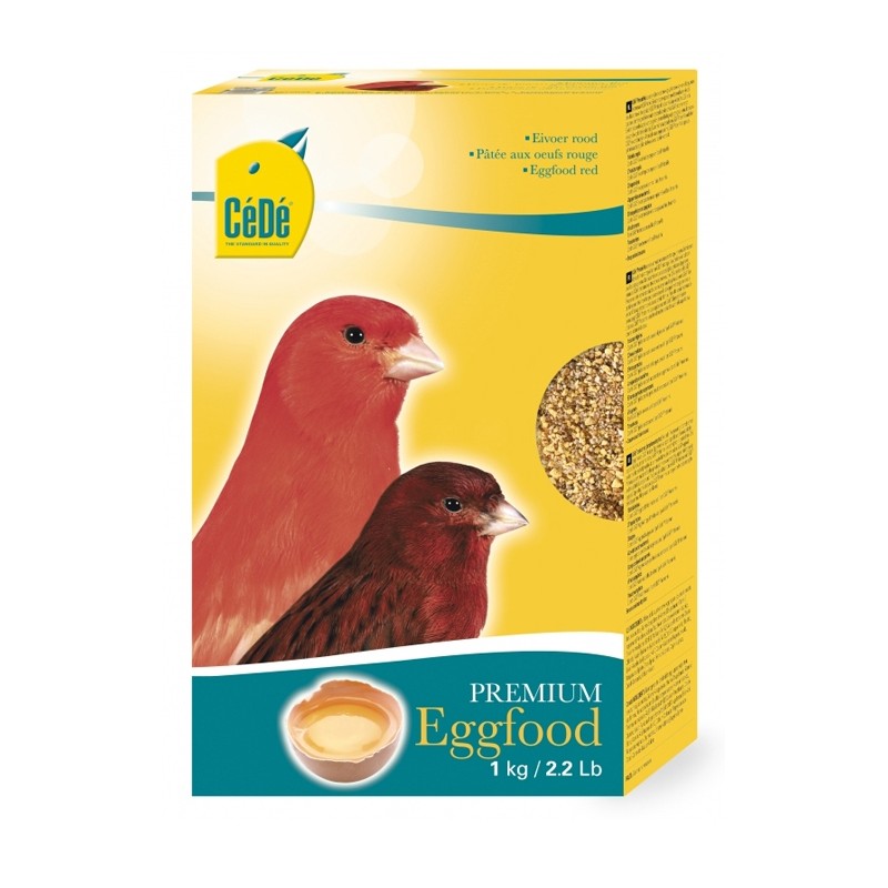 O Alimento de Ovo Vermelho da CéDé é ideal para canários de cor e outros pássaros com fator vermelho. Um dos fatores que torna este alimento único é o processamento de ovos inteiros frescos, sendo a proteína do ovo de fácil digestão e uma ótima fonte de proteína para os pássaros. Este alimento contém alto teor de proteínas animais e vegetais, bem como um conjunto de vitaminas, aminoácidos, minerais e oligoelementos, essenciais para uma boa reprodução. Para um bom desenvolvimento das penas, este alimento contém uma adição de aminoácidos essenciais. Para um tom vermelho intenso, deverá adicionar CéDé Caroded ao alimento de ovo ou à água para beber, nas fases de reprodução ou mudança da pena.